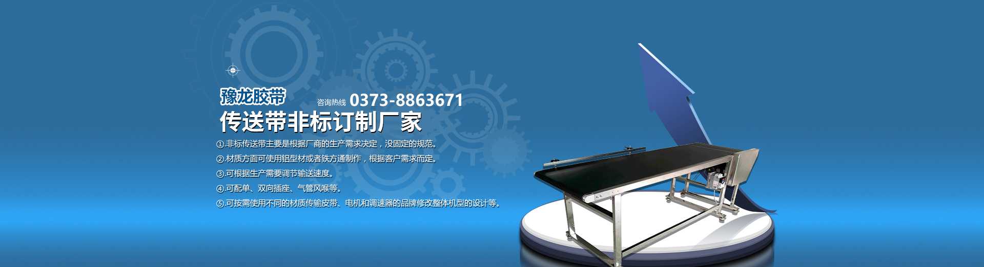 - 耐寒輸送帶河南省豫龍膠帶有限公司始建于1980年,公司艱苦創(chuàng)業(yè),現(xiàn)已具備一定的規(guī)模,并于2000年通過(guò)ISO9001:2000國(guó)際質(zhì)量管理體系認(rèn)證,我公司生產(chǎn)設(shè)備**,擁有國(guó)內(nèi)**的密煉機(jī)、壓延成型機(jī)、硫化機(jī)等成套膠帶生產(chǎn)設(shè)備:檢測(cè)手段齊全,有獨(dú)立的實(shí)驗(yàn)室和化驗(yàn)室:保證了公司使用的原材料、半成品以及產(chǎn)品都...0373-8863671